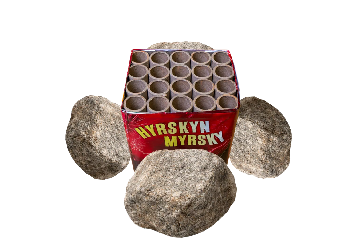 Myrskyisä pata, joka tuo taivaalle ukkosen jyrinää, säkenöivää salamointia ja hurjan monipuolista tähtisadetta. Myrskybongarin must-tuote! Upea pata, jossa 20 laukausta ja viisi eri efektiä.