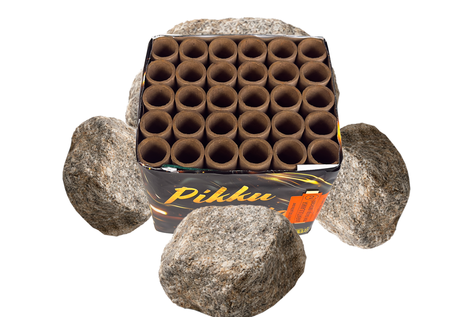 Den mångsidiga glitterpjäsen med 30 skott gnistrar och dundrar fram sex olika effekters vackra helheter mot den svarta natthimlen. De 22 mm breda rören är fyllda med täta och kraftfulla skott. Lite mer krut!