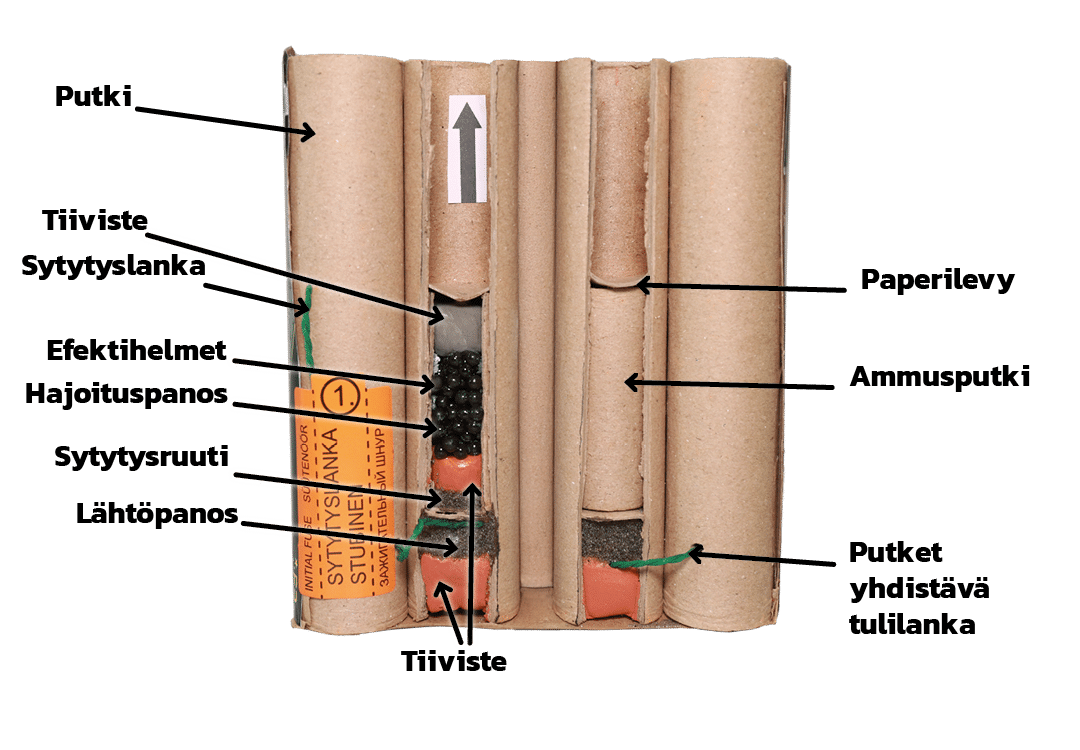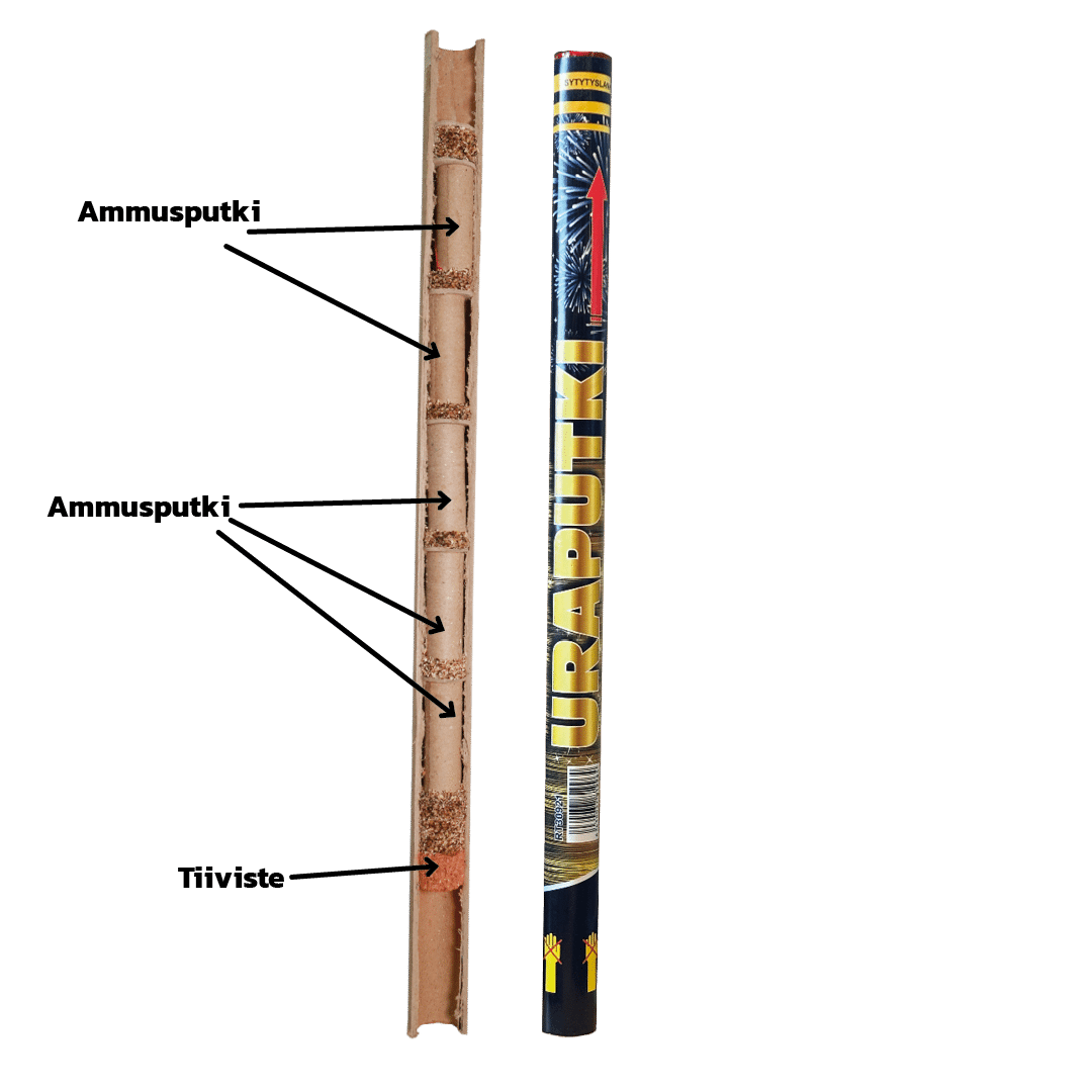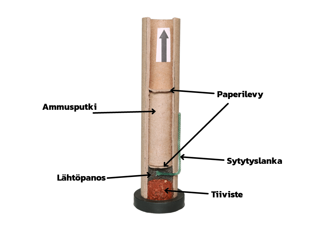 Niin sanotun ajomoottorin ruuti on puristettu putken sisään juuri oikealla paineella, jotta se jaksaa nostaa raketin ohjainkeppeineen oikealle korkeudelle.